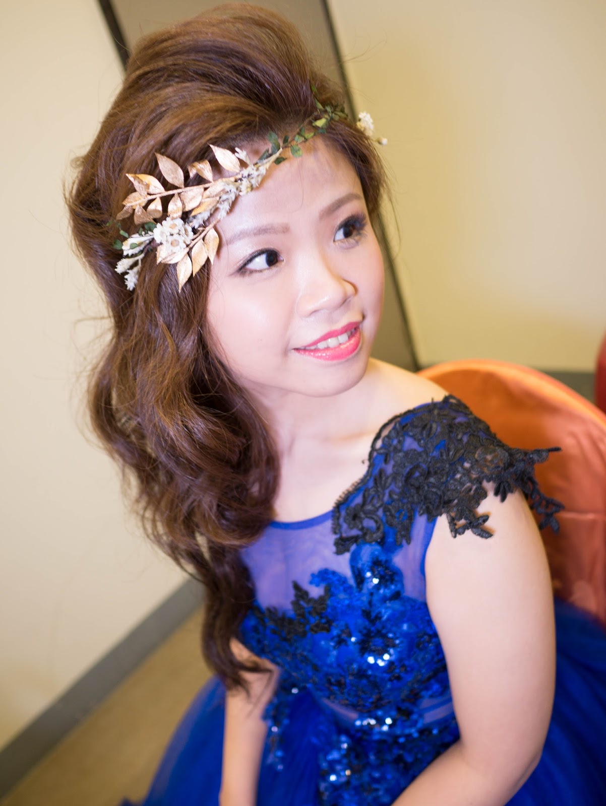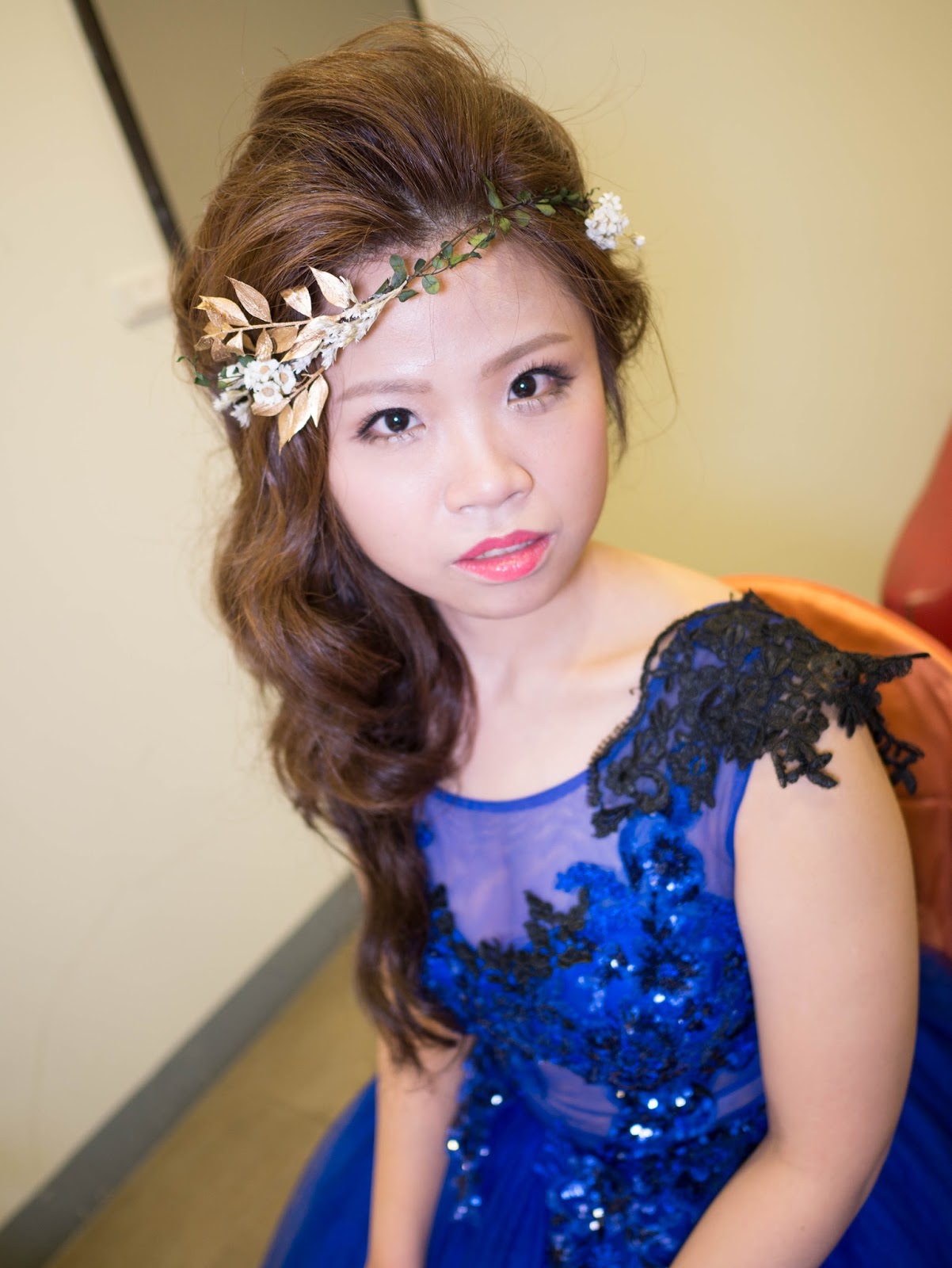 KIKI特地為她設計了兩款今年最流行的金色飾品與花圈做結合,效果真的很棒,完全不會跟人家有一樣的飾品噢!!