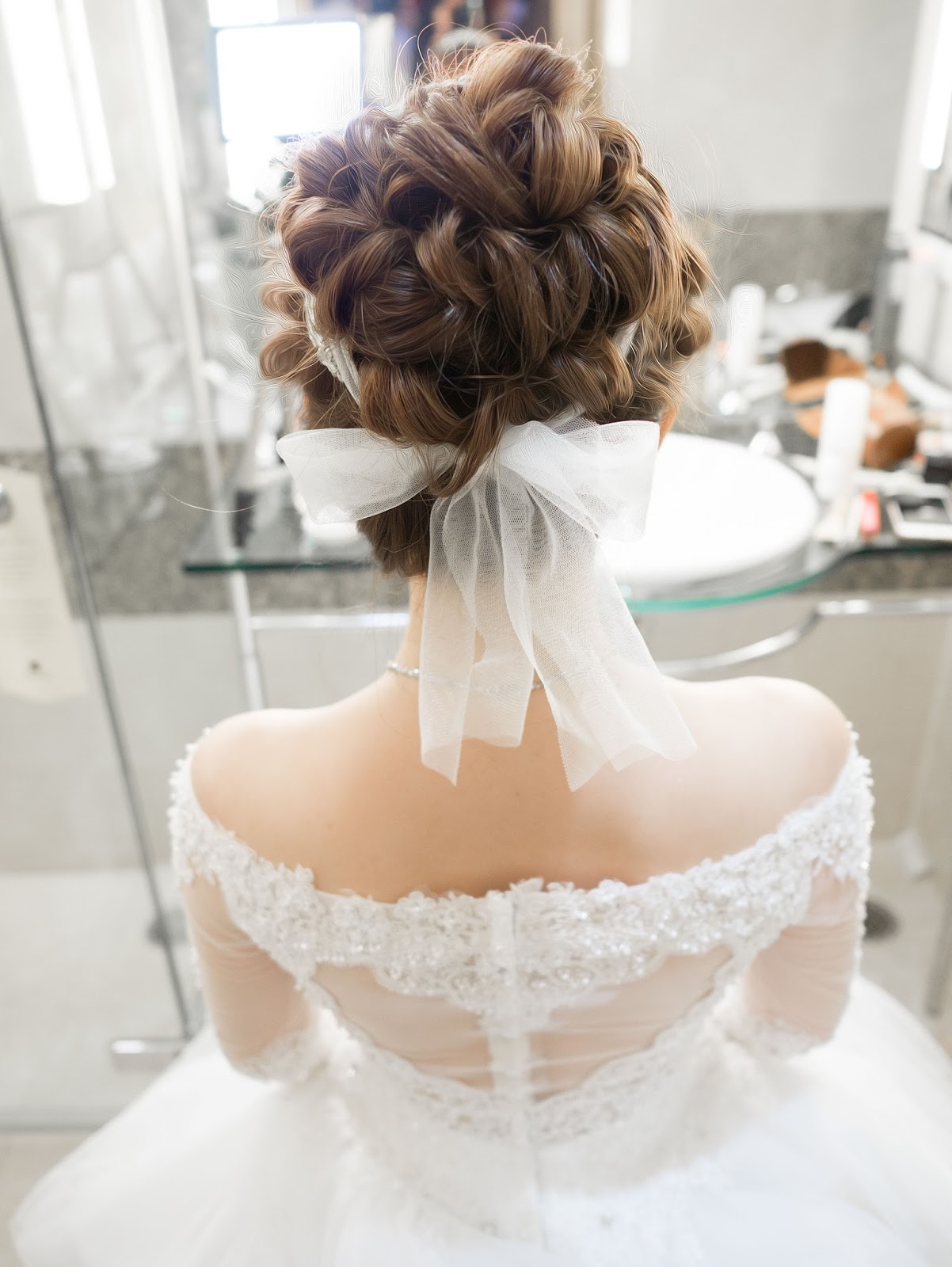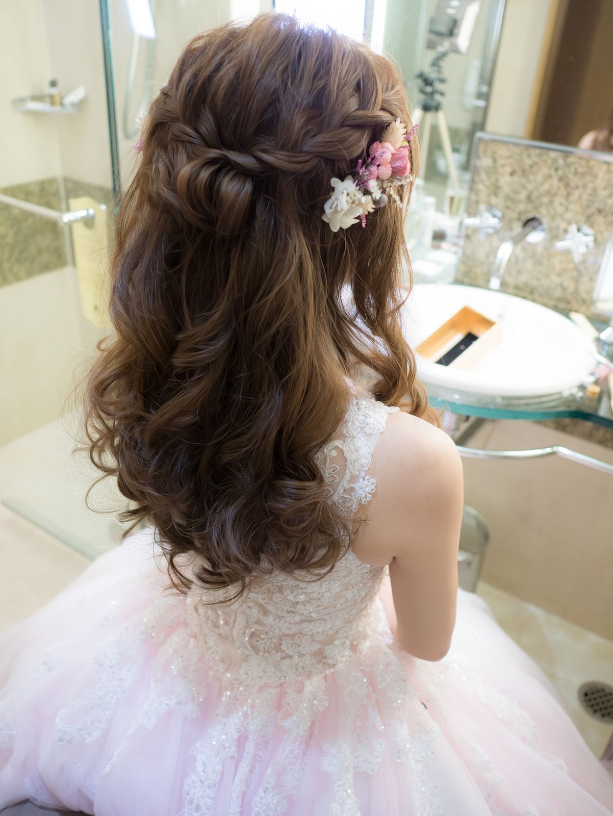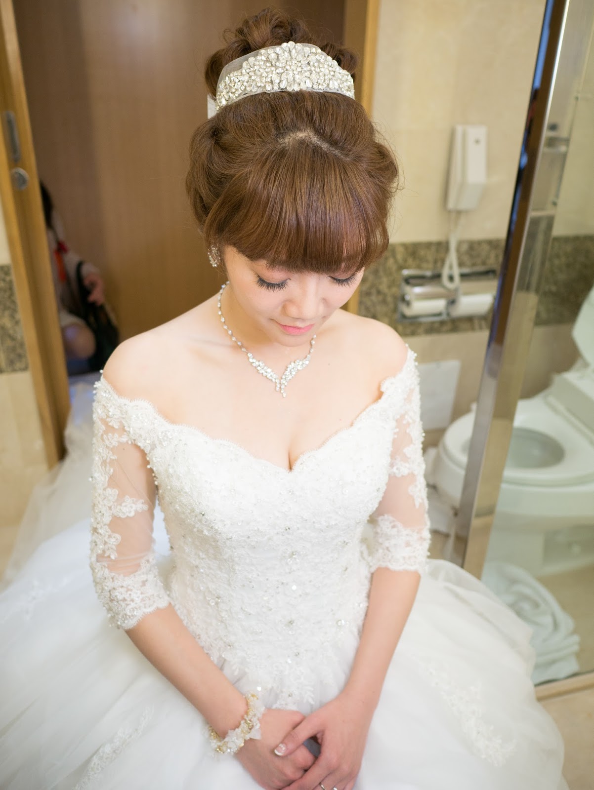 這次幫宜庭做了造型風格差異比較大的四種不一樣造型,從訂婚的復古s推波,到白紗進場,直接剪咩咩頭,變成不一樣風格的甜美造型,各套禮服所展露出來的美感皆不同,也是宜婷非常信任我,讓我可以剪掉你的瀏海呢!!